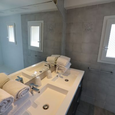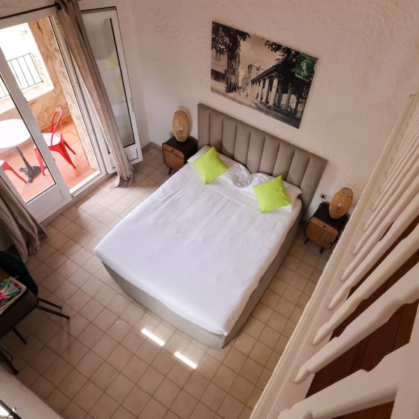 Elle se décline sous forme de duplex comprenant au rez-de chaussée la première chambre avec un grand lit double, un coin bureau ainsi qu’une grande salle de bain privative avec articles de toilette gratuits, un sèche-cheveux et une douche.