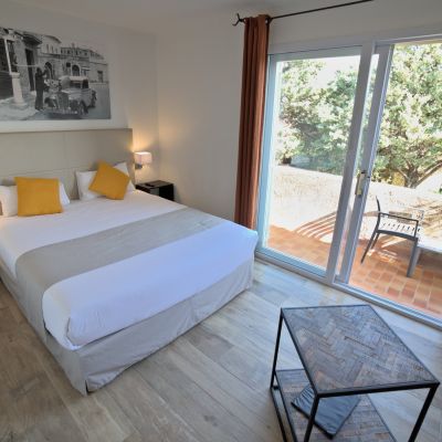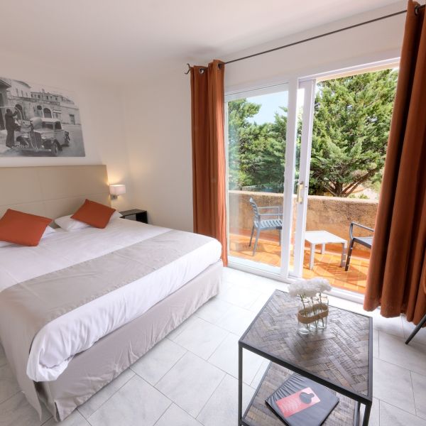 Dotée d’un balcon meublé avec vue sur le jardin, cette chambre triple climatisée se situe en étage.